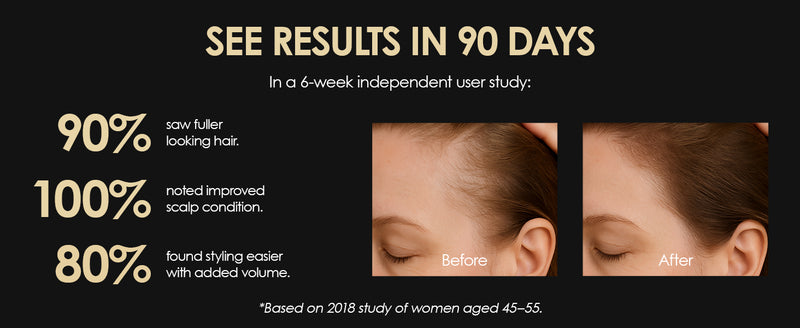 All of this means that you have fuller, thicker, more healthy hair with less breakage, more volume & less gray.