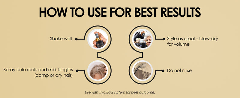 • Use Hair Thickening Spray for instant lift and long-term support